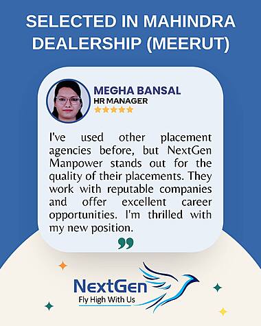 Let's Start Work: Looking for a job in Automobile Industry? or As an employer you want the experienced candidates. Look no further than NextGen Manpower. Our experienced recruiters will help you find the perfect solution that matches your skills and interests. Our process begins with a thorough consultation to understand your specific requirements and industry demands. Through rigorous vetting procedures, we ensure that our candidates align with your company culture and values.
